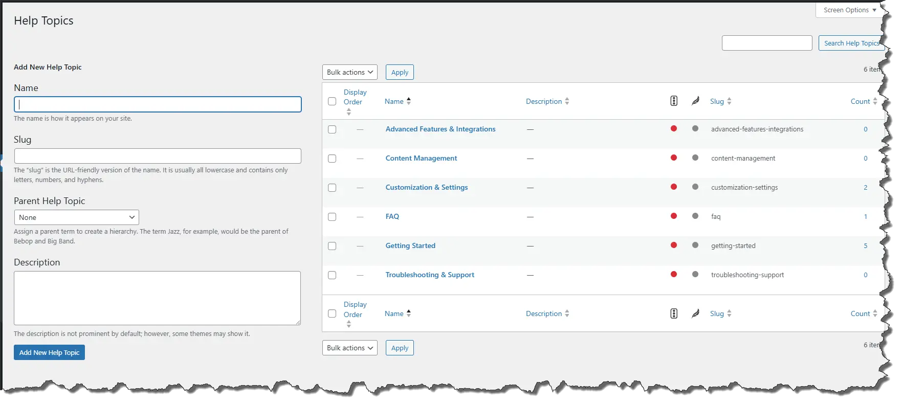 - Navigate to Knowledge Base > Help Topics in your WordPress dashboard.